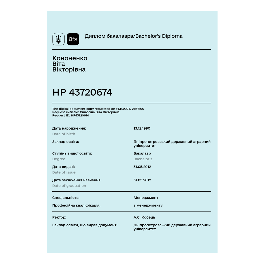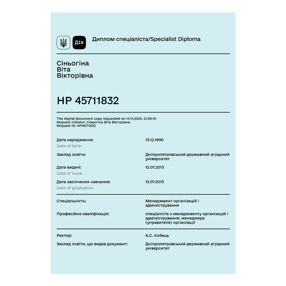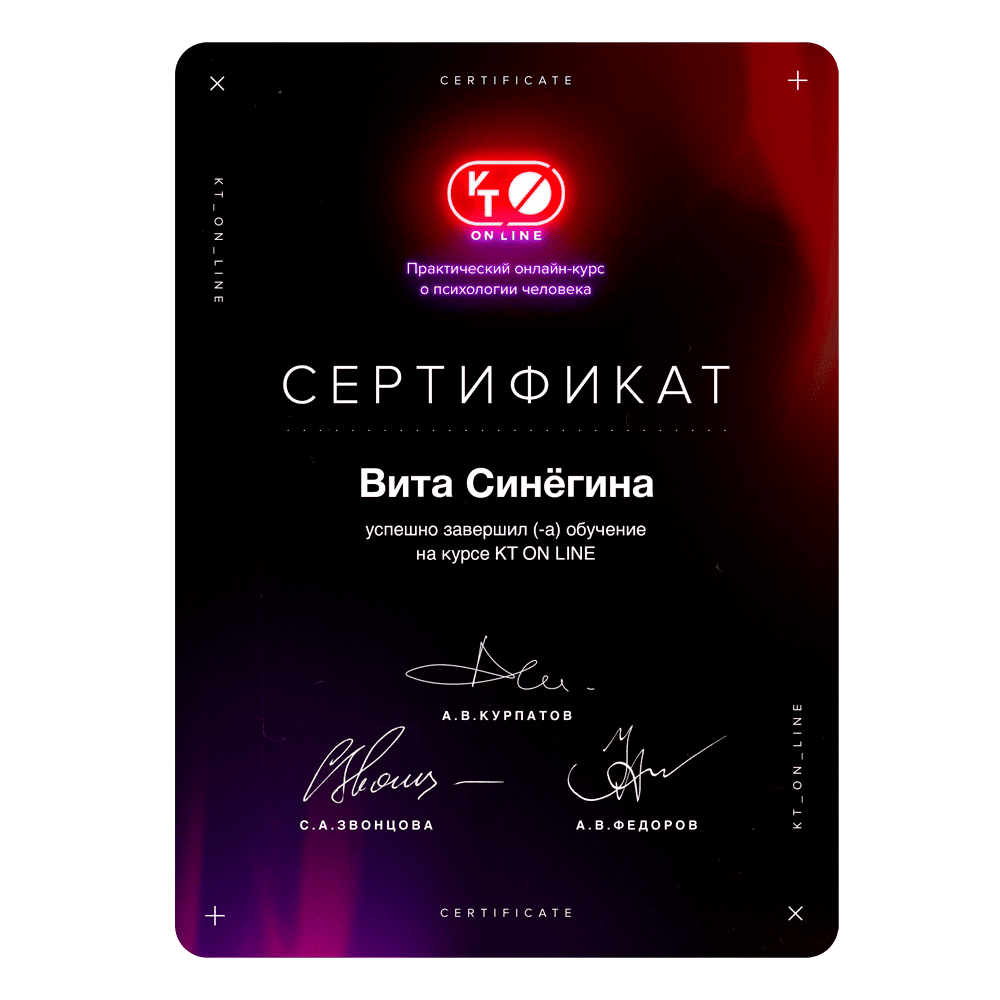 To run my business, I learned a lot and took various courses, including ones from Google, Meta, Diia.Business, Targetorium. I’ve applied this knowledge in practice, so I have not only a theoretical foundation but also real skills that I use in coaching: