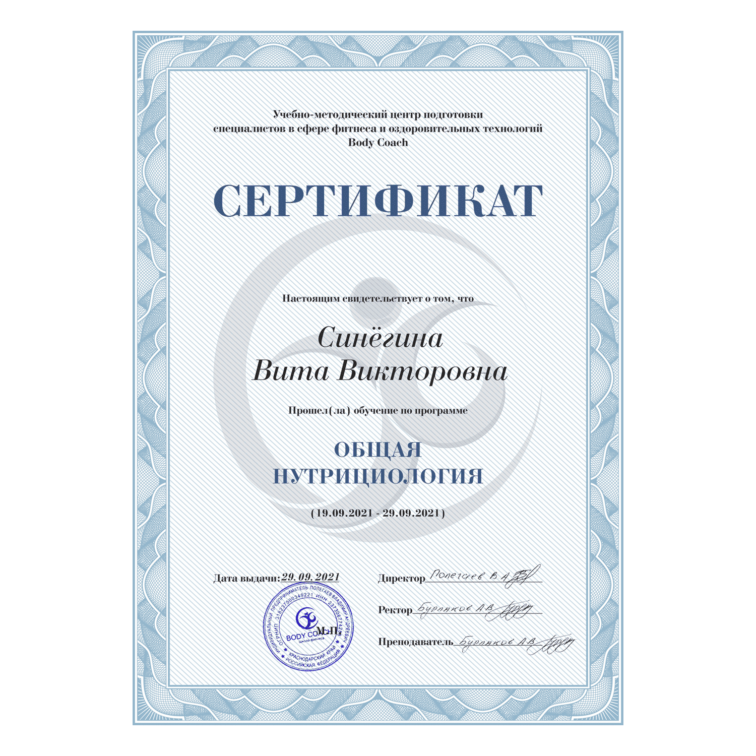 Coaching is an interdisciplinary practice, and its strength lies in combining various sciences to achieve practical results. As an entrepreneur, I use management and marketing techniques for planning and problem-solving. As a nutritionist and trainer, I apply knowledge of biology and dietetics. Psychology helps me work with mindsets and communication, while philosophy aids in finding balance and reflecting on values. Neuroscience explains habit formation, and pedagogy enhances my ability to teach. All areas of life are interconnected, which is why I develop key competencies to provide clients with comprehensive solutions.